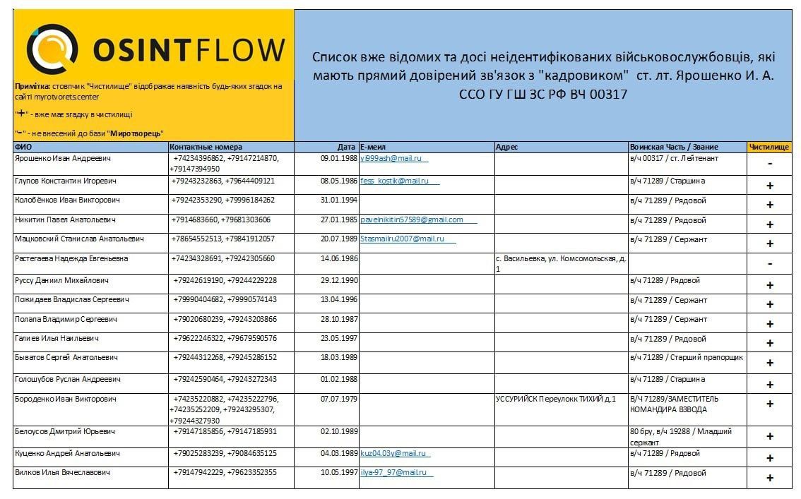 Робочі телефони: +79781203856, +74234396862 (згідно реєстрів понад дві сотні військовослужбовців)
